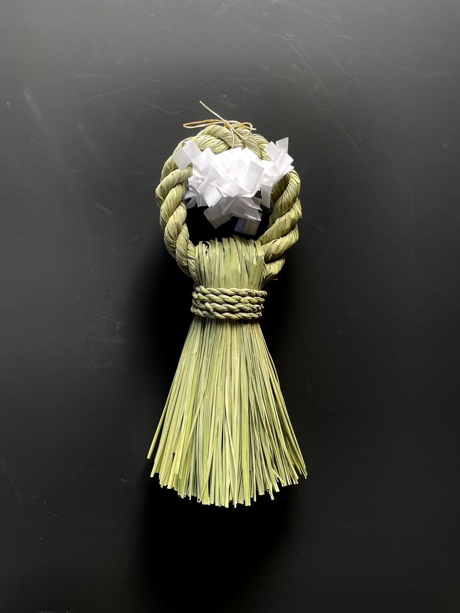 しめ飾り「鐘(かね)」は、藁の輪に揺れる清らかな紙垂(しで)が印象的なデザインです。